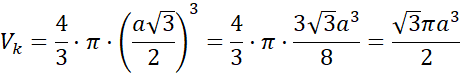 Wyznasz jaką część objętości kuli stanowi sześcian wycięty z kuli.