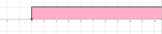 . Kółko umieszczone w punkcie 2 musi być zamalowane, a zbiór znajduje się na prawo od 2. Odczytaj z osi liczbowej, że do zbioru należą liczby 2 i 7.