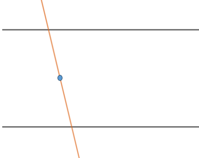Dwie równoległe proste przecięte trzecią, nieprostopadłą do nich prostą