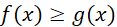Następnie wypisz te argumenty, dla których wartości funkcji f są większe lub równe niż funkcji g. Jest to przedział, w którym niebieska funkcja (f) znajduje się nad czarną (g).