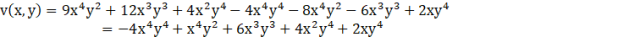 Dokonujemy zadeklarowane operacje arytmetyczne na każdym z wielomianów u i w, aby poznać wzór na funkcję v.
