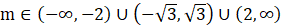 Wyznaczamy wzór funkcji x(m). Jeżeli Wyrażenie jest większe od zera, to ma dwa rozwiązania, ze względu na własność wartości bezwzględnej. Gdy równanie po lewej jest równe 0, to wartość bezwzględna ma tylko jedno rozwiązanie. Gdy funkcja po prawej stronie wartości bezwzględnej jest ujemne, to nie ma w ogóle rozwiązania.