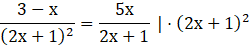 Sprowadzamy oba ułamki do wspólnego mianownika. Następnie mnożymy na krzyż wyrażenia po obu stronach równości, przerzucamy wszystkie wyrazy na jedną stronę i wyznaczamy miejsca zerowe. Jeżeli spełniają założenia, to są rozwiązaniem równania.