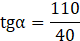 Podaj miarę kąta, który lina tworzy z poziomem ziemi, jeżeli przymocowano ją 110 m nad ziemią i zakotwiczono w ziemi w odległości 40 m od podstawy masztu.