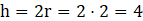 Wysokość rombu jest równa długości średnicy okręgu wpisanego. Bok to podwojoną Wysokość. Pole to iloczyn długości boku i wysokości na nią opadającej.