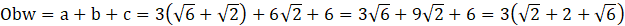 Wylicz wartość obwodu trójkąta wpisanego w okrąg o promieniu 6 cm, jeżeli α =