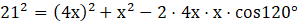 Jeden z boków trójkąta ma długość 21, a kolejny jest trzykrotnie dłuższy od trzeciego boku. Kąt między dwoma ostatnimi bokami jest równy