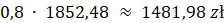 Kwota odsetek wyznaczona w poprzednim podpunkcie wynosiła 1852,48 zł. Kwota ta pomniejszona o podatek wynosi: