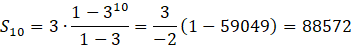 Rozbij sumę na dwa ciągi (jeden geometryczny i jeden arytmetyczny), oblicz ich sumy, a następnie zsumuj otrzymane wyniki.