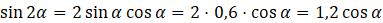 Mając dane sin α = 0,6 oraz 90° < α < 180°, wyznacz sin 2α.
