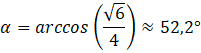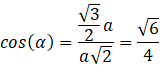 Oblicz długości boków trójkąta utworzonego przez zaznaczone odcinki. Wykorzystaj równoramienność powstałego trójkąta, by obliczyć miarę kąta α. Skorzystaj z tablic wartości funkcji trygonometrycznych lub kalkulatora.