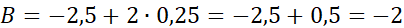 B jest o 2 odcinki jednostkowe na prawo od −2,5.