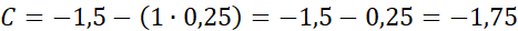 C jest o 1 odcinek jednostkowy na lewo od −1,5.