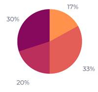 Przyporządkuj wartości procentowe z poniższej ramki do poszczególnych części A, B, C i D na wykresie kołowym.