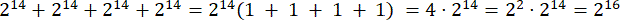 Wyłącz liczbę 214 przed nawias, następnie wymnóż podane liczby – zapisz je w postaci potęgi liczby 2. Pamiętaj, że mnożąc potęgi o tych samych podstawach, musisz dodać do siebie wykładniki, podstawa pozostaje bez zmian.