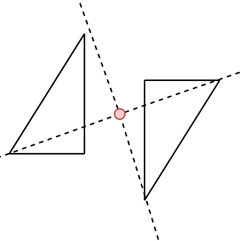 W tym zadaniu musisz, korzystając z zamieszczonych rysunków, opisać w jaki sposób można wyznaczyć dany środek symetrii.