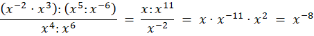 x nie może być równy 0, gdyż dzielimy przez x. Następnie zapisz dzielenie jako mnożenie razy odwrotność (potęga z przeciwnym znakiem w wykładniku) i uprość wyrażenie, sumując wykładniki.