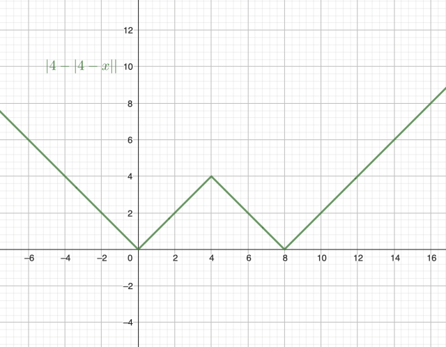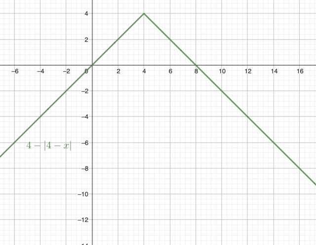 Teraz odbij symetrycznie tą funkcję względem osi OX, a następnie przesuń ten wykres o 4 jednostki w górę: