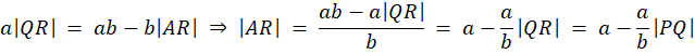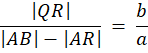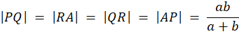 W czworokącie APQR wyznacz jego boki, jeśli podane są |AB| = a, |AC| = b, |PQ| : |QR| = 1, gdzie punkty P, Q, R znajdują się odpowiednio na bokach AC, BC i AB w trójkącie ABC. Ponadto wiadomo, że zachodzi PQ