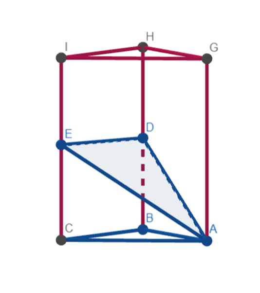 W tym zadaniu musisz narysować przekrój graniastosłupa prawidłowego trójkątnego, który zawiera środki dwóch sąsiednich krawędzi bocznych oraz jeden z wierzchołków podstawy dolnej.