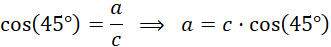 Najpierw oznacz przez b i c odpowiednio przyprostokątną i przeciwprostokątną. Następnie skorzystaj z funkcji cosinus, aby wyznaczyć długość boku a. Następnie zastosuj funkcję cosinus, aby obliczyć brakujący bok.