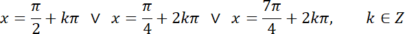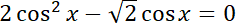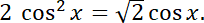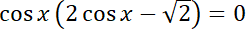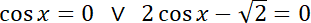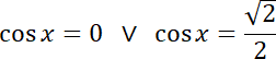 przed nawias. Iloczyn dwóch liczb jest równy 0 wtedy, gdy co najmniej jedna z nich jest równa 0, skąd możesz zapisać alternatywę dwóch równań. Rozwiąż każde z nich, wyznaczając x, dla którego cosinus przyjmuje wartości odpowiednio równe 0 i