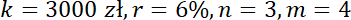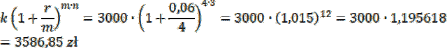 Ile wyniesie kapitał końcowy lokaty na 3 lata oprocentowanej na 6% w skali roku, jeśli kapitalizacja odsetek następuje kwartalnie i wpłacono 3000 zł?