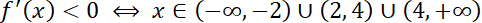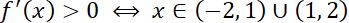 Następnie określ znak pochodnej w odpowiednich przedziałach i określ maksymalne przedziały monotoniczności. Na tej podstawie zauważ, że skoro funkcja zmienia znak z dodatniego na ujemny w punkcie x0 = 2, to funkcja ma tam maksimum lokalne.
