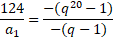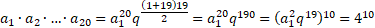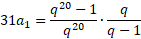 jako iloczyn pierwszego wyrazu i ilorazu ciągu q. Zauważ, że iloraz q ma w potędze ciąg arytmetyczny składający się z 19 wyrazów.