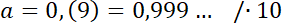 i całe równanie pomnóż przez 10 (ponieważ okres ma długość 1). Następnie odejmij od siebie stronami oba równania i wyznacz wartość