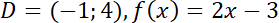 wstaw podane liczby i wyznacz ich wartości. Zaznacz w układzie współrzędnych otrzymane punkty i połącz je prostą. Zauważ, że przedział jest otwarty, więc oba krańcowe punkty nie należą do wykresu.