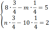 w każdym równaniu w układzie równań podstaw liczby podane w treści zadania i wyznacz rozwiązania powstałych równań, czyli wartości liczb