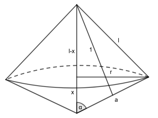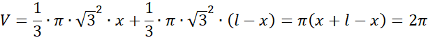 Na koniec oblicz objętość powstałej bryły, czyli dwóch stożków, gdy objętość każdego z nich można obliczyć ze wzoru