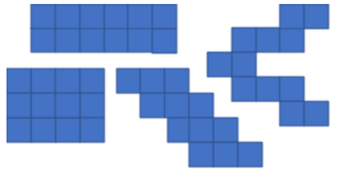 Pole każdej z figur policz poprzez policzenie, ile małych kwadratów zawiera się w każdej z figur.