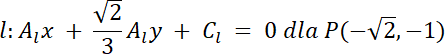 prosta k:√2x–3y = 0, więc Ak = √2, Bk = –3
