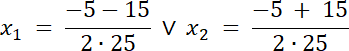Q(x) = 0⇒ 25x2 + 5x–2 = 0
