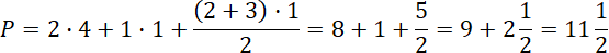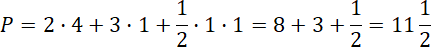 W tym zadaniu musisz obliczyć pole figury z ilustracji, dodając do siebie pole podanego w treści prostokąta i pozostałych dwóch figur.