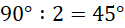 Przekątna kwadratu dzieli jego kąt na połowy. Podziel miarę kąta prostego na 2, aby znaleźć szukany kąt.