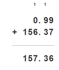 15,34 – 14,35 + 156,37 = 157,36