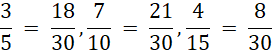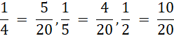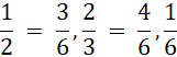 Doprowadź trójki ułamków do najmniejszego wspólnego mianownika.