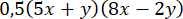 W tym zadaniu przedstaw pole trójkąta prostokątnego o przyprostokątnych długości 5x + y i 8x - 2y.