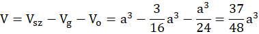 W tym zadaniu musisz obliczyć objętość bryły otrzymanej w wyniku wycięcia z sześcianu o krawędzi a pewnego wielościanu.