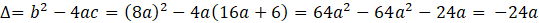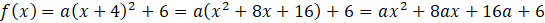 Rozwiń nawias za pomocą wzoru skróconego mnożenia, a następnie wymnóż nawis przez stałą i zredukuj jednomiany podobne. Oblicz wyróżnik funkcji, a następnie przyrównaj go do podanej w poleceniu wartości. Oblicz wartość współczynnika a. Oblicz wartość funkcji dla argumentu 0, otrzymując w ten sposób współrzędne punktu przecięcia wykresu z OY.