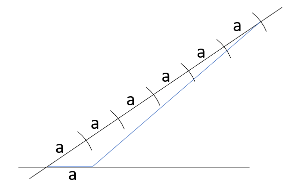 Wykreśl prostą łączącą ostatni z punktów wyznaczonych w punkcie 3. punktów z końcem odcinka o długości a różnym od punktu przecięcia prostych.