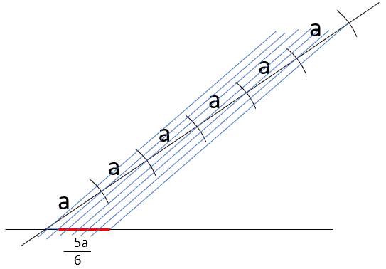 Punkty przecięcia prostych z odcinkiem dzielą go na sześć równych części, stąd każdy z otrzymanych odcinków ma długość