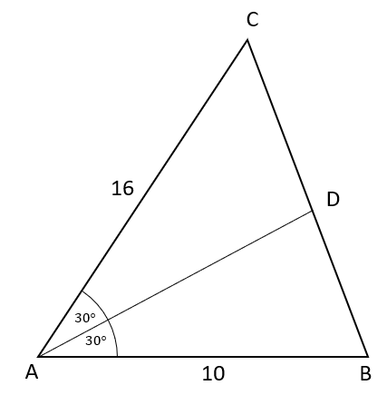 Zauważ zależność pól trójkątów ABD i ADC, a następnie z niej wyznacz długość odcinka |AD|.