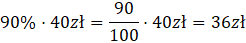 Oblicz cenę ubrania po obniżce, jeśli obniżono ją o 10% z kwoty 40 zł.