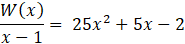 Zauważ, że jednym z pierwiastków wielomianu W(x) jest x = 1. Podziel wielomian W(x) przez dwumian x – 1 za pomocą schematu Hornera. Następnie wyznacz pierwiastki trójmianu