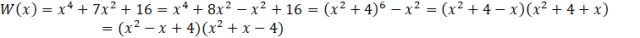 Wielomian W(x) nie ma pierwiastka, ponieważ parzysta potęga liczby rzeczywistej jest zawsze liczbą nieujemną, a suma liczby dodatniej i liczb nieujemnych jest dodatnia, więc nie może być równa 0.