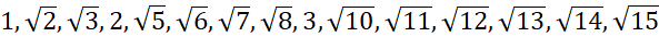 Pierwiastki kolejnych liczb naturalnych, które są mniejsze od 4: